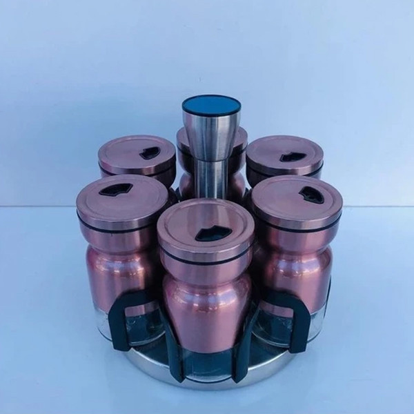 ست 7 پارچه CEYKA ساخت : ترکیه دارای سیستم پایه چرخشی کامل به هر دو طرف سری جا ادویه ها بسیار نرم و روان هستند سری قابل تنظیم در چهار حالت مختلف جنس پایه از استیل ضدزنگ جنس بدنه از شیشه مقاوم