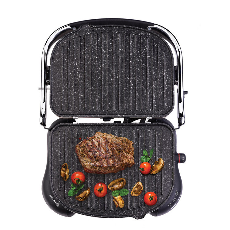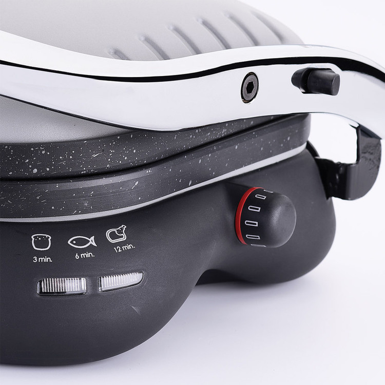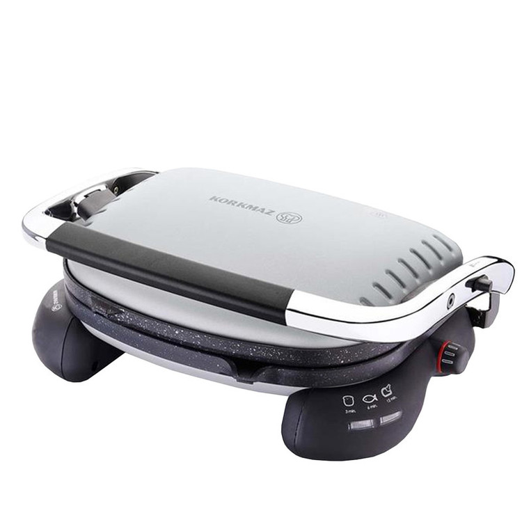 این دستگاه با توان مصرفی 1800 وات، دارای بدنه ای از جنس فلز می باشد که علاوه بر ظاهر خاصی که دارد از استحکام و عملکرد فوق العاده ای نیز برخوردار است. برای ساندویچ ساز کرکماز کد A324 صفحه هایی از جنس گرانیتی با پوشش PTFE و نچسب در نظر گرفته شده و مواد غذایی به آن نمی چسبد ضمن آن که شیارهای طراحی شده بر روی این صفحات به حفظ روغن موجود در مواد غذایی کمک می کند و لازم نیست شما از روغن بیشتری برای سرخ و گریل کردن استفاده کنید. به عنوان مثال می توان از روغن موجود در انواع گوشت برای طبخ و گریل کردن آن ها استفاده کرده و دیگر نیاز نباشد تا از روغن جداگانه ای برای این منظور استفاده کنید. حرارت در گریل 324 به تدریجی و اتوماتیک تنظیم خواهد شد و به نشانگر کنترل دما مجهز شده است. این دستگاه دارای ظرفیت 6 عدد نان تست بوده که آنها را در مدت 3 دقیقه برشته میکند. گریل کرکماز علاوه بر قابلیت برشته کردن، در صورتی که آن را در حالت گریل قرار دهید، میتوانید برای کباب کردن مرغ یا گوشت در 12 دقیقه یا ماهی در 6 دقیقه از آن نیز استفاد صفحات این دستگاه به اندازه 180 درجه باز شده و می توان گوشت، ماهی، سوسیس و همچنین انواع سبزیجات را روی این صفحات به راحتی گریل کرده و از طعم خوش غذاهای گریل شده و کبابی بهره مند شد. با برخورداری از ساندویچ ساز و گریل کرکماز KORKMAZ می توان انواع ساندویچ ها را به راحتی آماده کرد. برای این منظور کافیست تا مواد را روی نان مورد نظرتان گذاشته و داخل دستگاه قرار دهید، سپس درب دستگاه را ببندید تا پس از زمان تعیین شده ساندویچ های داغ و خوشمزه آماده گردند. کلید روشن و خاموش کردن ساندویچ ساز کد A324 کرکماز که به صورت ولومی چرخشی می باشد روی پایه قرار دارد و می توان از همین قسمت درجه دستگاه را نیز تنظیم کرد. همچنین این دستگاه دارای دو چراغ نشانگر می باشد که می تواند روشن بودن دستگاه و یا زمان اتمام کار را به کاربر نشان دهد. دسته ای که برای ساندویچ ساز و گریل کرکماز KORKMAZ در نظر گرفته شده کمک می کند تا کاربر بتواند درب را باز کرده و راحت تر از دستگاه استفاده نماید. این صفحه های نچسب از دستگاه جدا شده و شست و شوی آن ها به راحتی صورت می گیرد.
