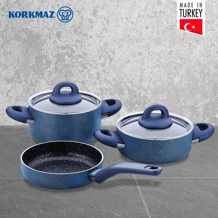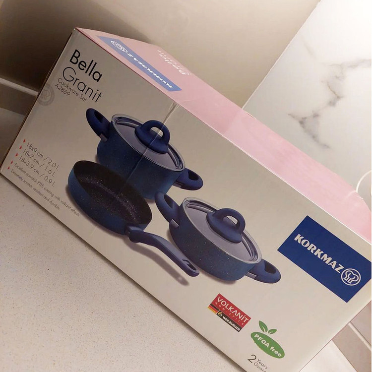 این ست قابلمه گرانیت کرکماز ترکیه که از مواد قابل بازیافت، کاملاً طبیعی و فناوری سازگار با محیط زیست تولید شده است، با استفاده از روغن بسیار کم، غذاهای لذیذی را طبخ می کند، با روکش PTFE به ظاهر آتشفشانی، فوق العاده مقاوم در برابر خش و پوشش بیرونی مقاوم در برابر حرارت بالا می باشد. حاوی فلزات سنگین مضر مانند سرب و کادمیوم نیست. با رسانایی حرارتی بالا، عملکرد پخت بالایی را حتی در حرارت کم ارائه می دهد و نظافت بسیار آسانی دارد. نسبت به انواع دیگر قابلمه ها با استفاده از روغن کمتر غذاهای خوشمزه تری درست می کند. مواد اولیه پوشش آتشفشانی توسط شرکت Weilburg در آلمان با استفاده از تکنولوژی برتر آلمان تولید می شود.