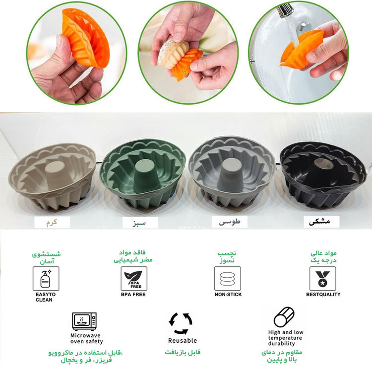 - قالب کیک، شیرینی، انواع دسر و ... بارونس - مجموعه 6 عددی - ساخت ترکیه - استفاده در فریزر تا منفی 26 درجه - استفاده در فر، ماکروویو و... تا مثبت 260 درجه - قابل شستشو توسط دست و ماشین ظرفشویی -