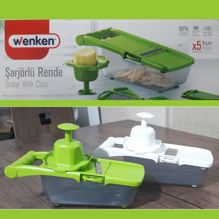 رنده تقویت شده مدل ونکن ساخت یوروه پلاستیک ترکیه URVE CHARGED برای سالها، رندهها یکی از بزرگترین کمککنندگان ما در آشپزخانه برای برش دادن سبزیجات و میوهها به مقدار مساوی بودهاند. در حین پخت و پز در آشپزخانه، باید محصولات خود را مطابق با غذا خرد یا تکه تکه کنیم. رنده Wenken که برای برآوردن این نیازهای مختلف با هم طراحی شده است، دارای ابزار و چاقوهایی است که به شما کمک می کند در اندازه های مختلف برش، برش و خرد کنید. استفاده آسان، فضا را اشغال نمی کند، تیغه فولادی ضد زنگ، پایه ضد لغزش، استانداردهای ایمنی و بهداشت انسان، بدون BPA، مناسب برای تماس با مواد غذایی. تیغه مورد نیاز خود را انتخاب کرده و در محل مخصوص صفحه قرار دهید و سپس صفحه را روی مخزن قفل کرده و شروع کنید.