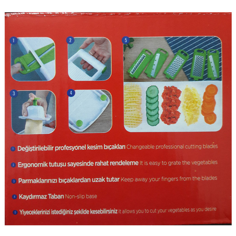 - دارای پنج تیغه متفاوت - تیغه های تقویت شده - ساخت URVE PLASTIK ترکیه - پایه های سیلیکونی ضدلغزش - قفل شدن کامل صفحه رنده روی مخزن خود