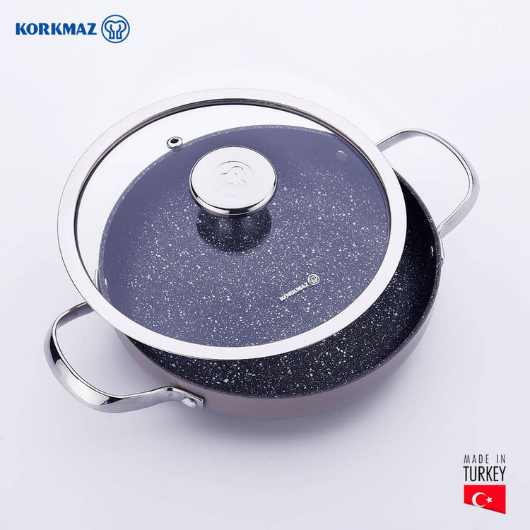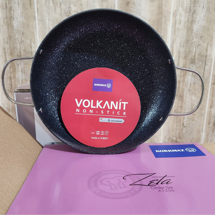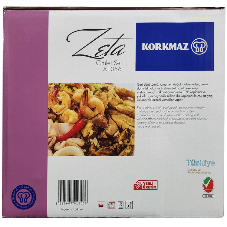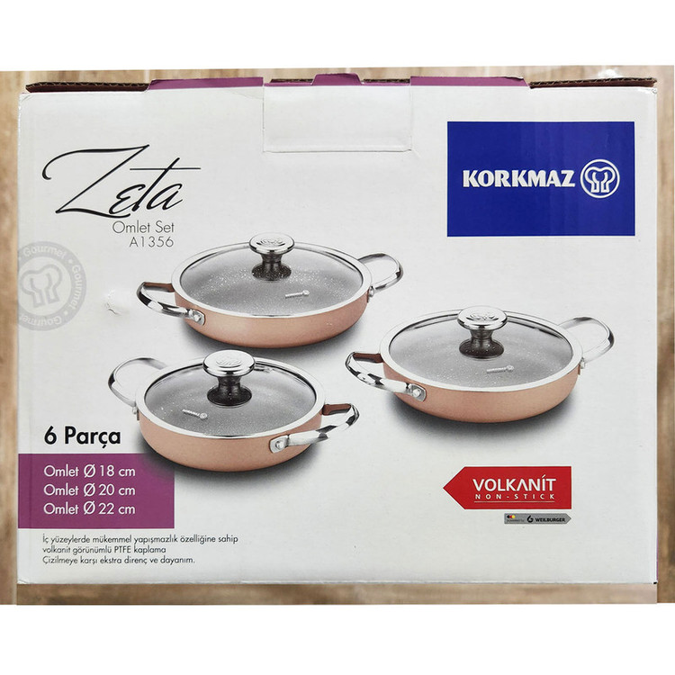 ست سرویس پخت و پز و تابه 6 پارچه مدل زتا ساخت کرکماز ترکیه، این ست تابه در سه اندازه متفاوت 18-20-22 سانتی متر تولید شده است و از پوشش PTFE با ظاهر آتشفشانی با خاصیت نچسب عالی در سطوح داخلی و مقاومت و دوام بیشتر در برابر خراشیدگی و بهره مند از تکنولوژی تولید سازگار با محیط زیست و پخت و پز بدون تولید گازهای سمی دارا می باشد. این محصول حاوی فلزات سنگین مضر مانند سرب و کادمیوم نیست. با رسانایی حرارتی بالا، عملکرد پخت بالایی را حتی در حرارت کم ارائه می دهد، نسبت به انواع دیگر قابلمه ها با استفاده از روغن کمتر غذاهای خوشمزه تری درست می کند. از مواد قابل بازیافت تولید شده و بسیار آسان تمیز میشود. ماده اولیه پوشش ولکانیت با تکنولوژی آلمان در ویلبرگر آلمان تولید می شود.زتا که از مواد قابل بازیافت، کاملاً طبیعی و فناوری سازگار با محیط زیست تولید شده است، با استفاده از روغن بسیار کم، غذاهای لذیذی را طبخ می کند، با روکش PTFE به ظاهر آتشفشانی فوق العاده مقاوم در برابر خش و پوشش بیرونی سیلیکونی مقاوم در برابر حرارت بالا می باشد.