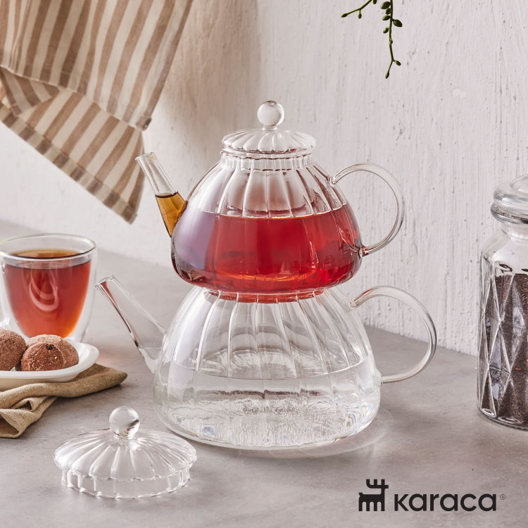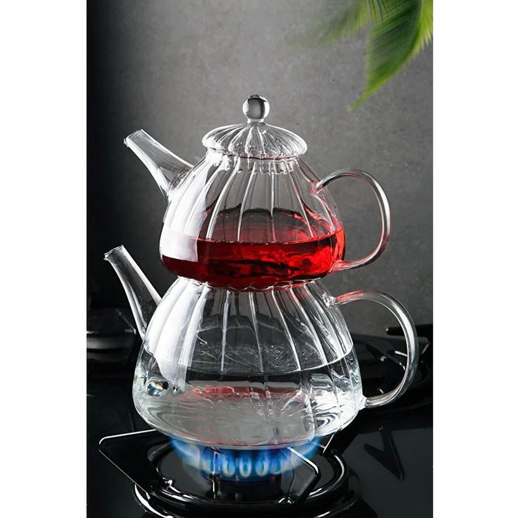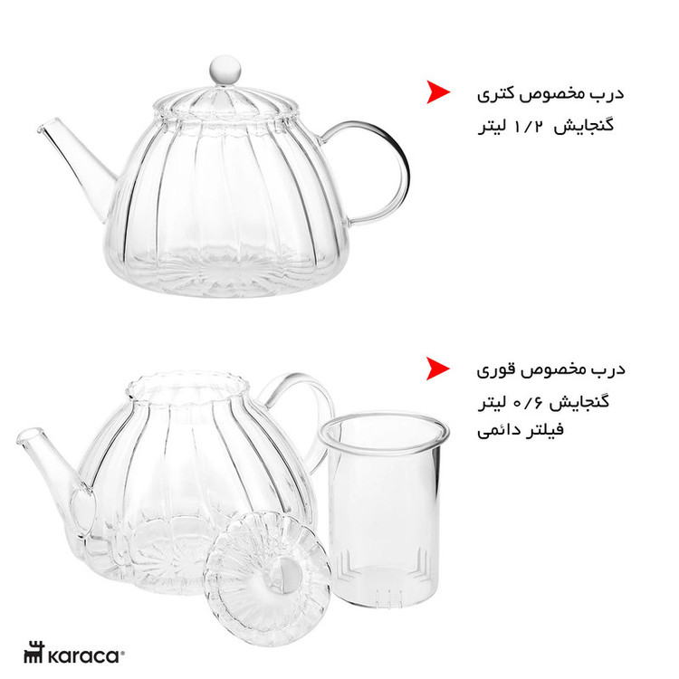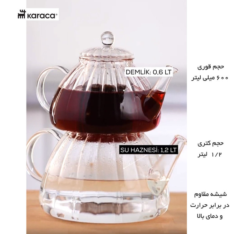 مجموعه کتری و قوری شیشه ای بوروسیلیکات کاراجا مدل لری KARACA-LORI ساخت ترکیه ، این ست شیشه ای مقاوم با دم کردن چای، قهوه و دمنوش به صورت سالم و خوشمزه با قوری 0.6 لیتری و کتری 1.6 لیتری خود به تجربه چای و نوشیدنی شما لذت می بخشد. قوری شیشه ای چای شما را سالم تر و خوشمزه تر می کند. با دیدن مقدار دم و آب موجود در چای می توانید چای خود را با قوام ایده آل دم کنید. ساختار شیک آن با انواع اجاق گازها و اجاق های القایی نیز سازگار است. بسیار جذاب است و می توان آن را در ماشین ظرفشویی شست. این کتری و قوری با دسته های شیشه ای از جنس بدنه، ترکیبی از طراحی و ظرافت بالای خود را نشان می دهد.