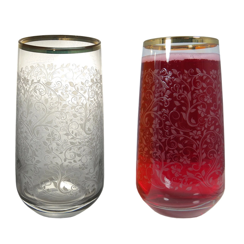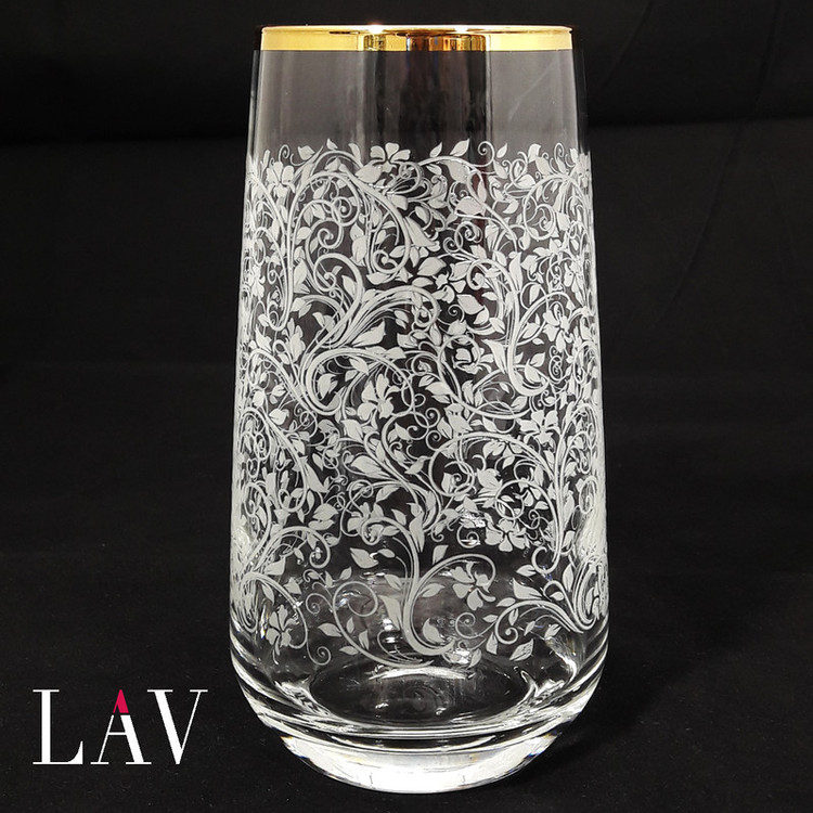 - ساخت برند معتبر لاو ترکیه - دست ساز ( Hand Made ) -دارای لبه های طلاکوب - حجم لیوان: 480 سی سی - ارتفاع لیوان 14 سانتی متر - قطر دهانه لیوان 6 سانتی متر - طرح نیم برجسته گل و ساقه روی لیوان با شفافیت بالا و جنس مقاوم - شستشو با دست