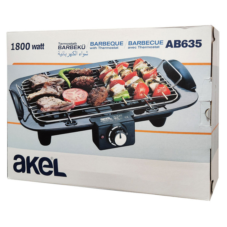 باربیکیو و کباب پز برقی جدید آکل مدل AKEL AB-635 ساخت ترکیه، برای لذت کباب کردن سالم بدون بو و بدون دود در منزل، محل کار، بالکن و باغ شما طراحی شده است. با قدرت پخت بالای 1800 وات آن دارای ترموستات و قابلیت تنظیم حرارت می توانید از پخت و پز سریع و ایمن لذت ببرید. دارای استاندارد ایمنی و سلامت انسان از اروپا می باشد. با کنترل حرارت قابل تنظیم : ترموستات موجود در محصول از سوختن غذای شما جلوگیری می کند و به شما امکان می دهد غذاهایی را تهیه کنید که مانند انار سرخ شده و در عین حال داخل آنها به خوبی پخته شده است. قابلیت تفکیک و باز و بست آسان قطعات در عرض چند ثانیه.. داخل باربیکیو تا خط مشخص شده باید آب بریزید و آب موجود در کف از چسبیدن روغن جلوگیری می کند و تمیز کردن را آسان می کند. کباب پز و باربیکیو آکل ساخت کشور ترکیه است. از مزایت های این کباب پز نسبت به سایر کباب پزهای موجود در بازار میتوان به المنت خیلی با کیفیت با روکش نیکل این محصول اشاره کرد.همچنین سبک بودن و راحتی در شست و شوی محصول هم جز مزایای این باربیکیو است. برای تغذیه سالم بخار پز یا کباب کردن همیشه توصیه میشود تا از روغن های مضر و چرب شدن کبد جلوگیری کنیم قطعا کباب کردن، بسیاری از مواد غذایی را خوشمزه تر میکند اما مشکل کباب کردن در فضای بسته مثل اشپزخانه و اتاق، بو، دود و کثیف کاری آن است که این مشکل با باربیکیو برقی آکل حل شده است. یکی از ویژگی های مهم باربیکیو آکل داشتن المنت با روکش کروم نیکل با دوام بالا و انتقال حرارات یکنواخت باعث مغز پخت و کباب شدن مواد غذایی میشود.