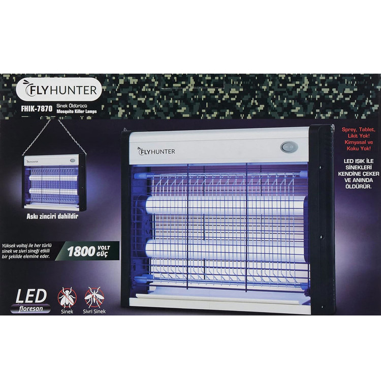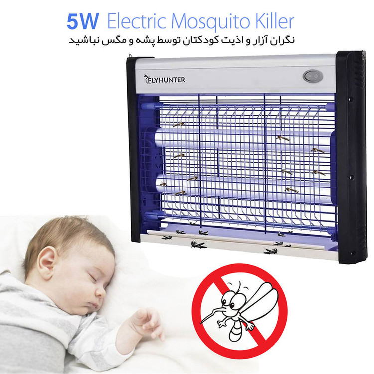 با حشره کش برقی فلای هانتر به جنگ با حشرات ( پشه ، مگس و...) بروید! این محصول با کیفیت مونتاژ ترکیه و دارای استانداردهای سلامت ایمنی و بهداشت انسان از اروپا و انستیتو سلامت ترکیه می باشد. این محصول سیستم حذف خودکار، بهداشتی و کارآمد، موثرترین تله برای حذف حشرات در حال پرواز در روز و شب با استفاده از نور مخصوص حذب حشرات بصورت الکترونیکی فراهم می کند. حشرات از آزار دهندهترین موجودات هستند. حشره کش برقی، از جمله ابزارهایی هستند که برای از بین بردن حشرات استفاده میشود. این دستگاه به وسیلهی نور ساطع شده از لامپ مخصوص جذب حشرات، حشرات را به خود جذب مینماید. با جذب حشرات به نور، جریان الکتریکی به آنها برخورد کرده و سبب از بین رفتن حشرات میشود. این نوع حشره کش برقی بسیار پرطرفدار و کاربردی می باشد. این دستگاه در قسمت تحتانی دارای مخزن و سینی مخصوص برای جلوگیری از انتشار آلودگی دارد که انتخاب بهتری برای خرید است. مخزن میتواند حشرات از بین رفته را درون خود جمع کند و تمیز کردن و نظافت دستگاه به راحتی صورت گیرد. این دستگاه با اتصال به برق قابلیت نصب در همه ی مکان ها را دارد و همچنین مضعلات و دردسر های حشره کش های شارژی باتری، اسپری، پودری و قرصی را ندارد.این حشره کش بصورت پرتابل طراحی شده ، که قابلیت آویز کردن از سقف و هم قابلیت قرار گرفتن روی میز را دارا است . حشره کش برقی فلای هانتر مناسب برای استفاده در منازل ، دفتر کار ، رستورانها، مغازه های مواد غذایی ، فروشگاه ها و اغذیه فروشی ها و مراکز درمانی و بهداشتی میباشد.