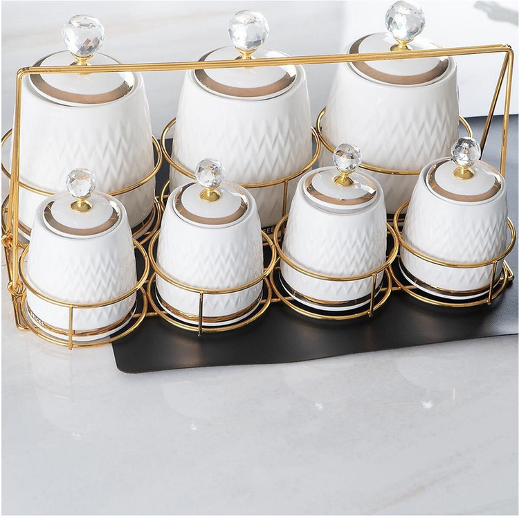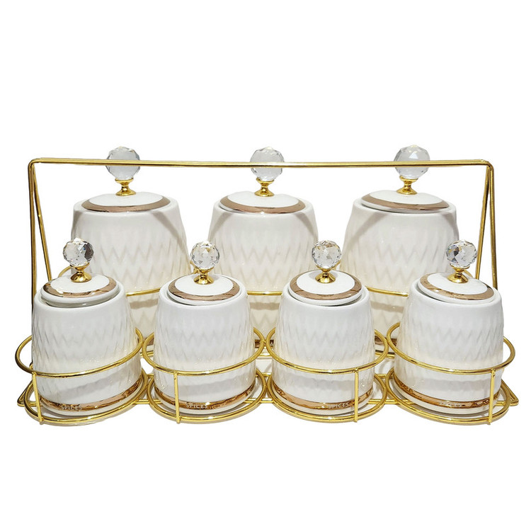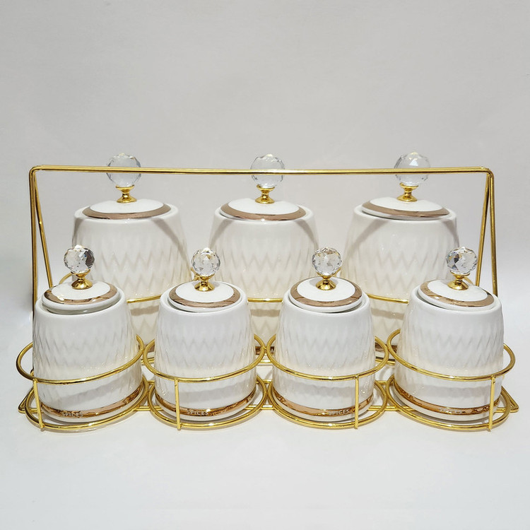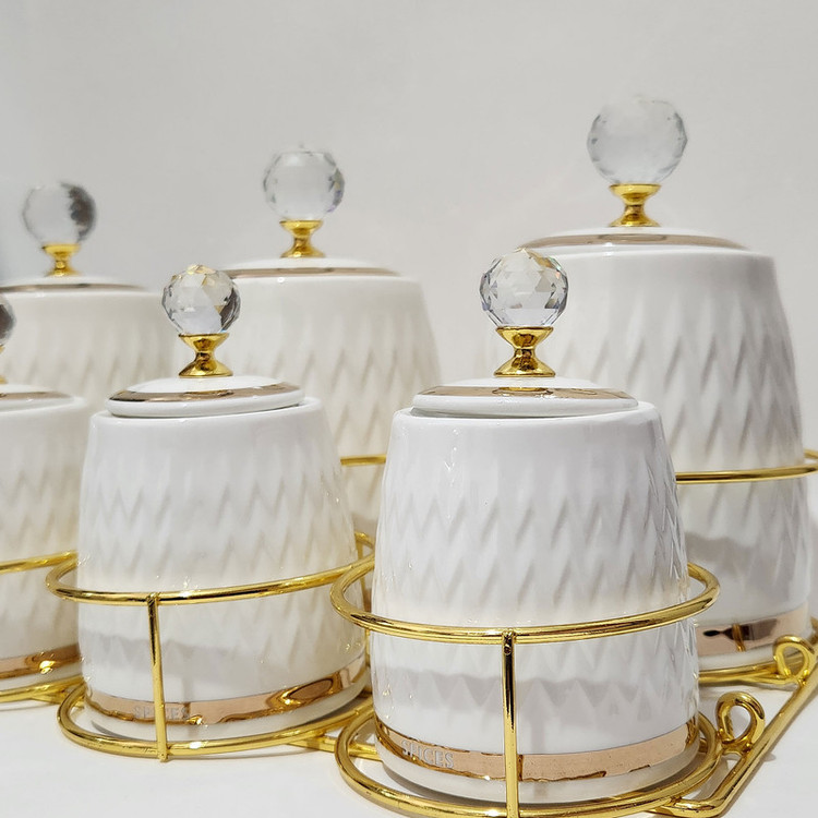 - دارای سه جای ادویه بزرگ با حجم 750 میلی لیتر و چهار جای ادویه با حجم 200 میلی لیتر - دارای استند استیل مقاوم با دستگیره قابل حمل - با دستگیره های کریستالی جذاب - کلیه درب ها دارای واشر سیلیکونی برای عدم نفوذ هوا و رطوبت هستند - مقاوم در برابر ترک خوردگی -چفت شدن کامل درب با واشر سیلیکونی تعبیه شده در آن - ساخت آجار ترکیه