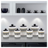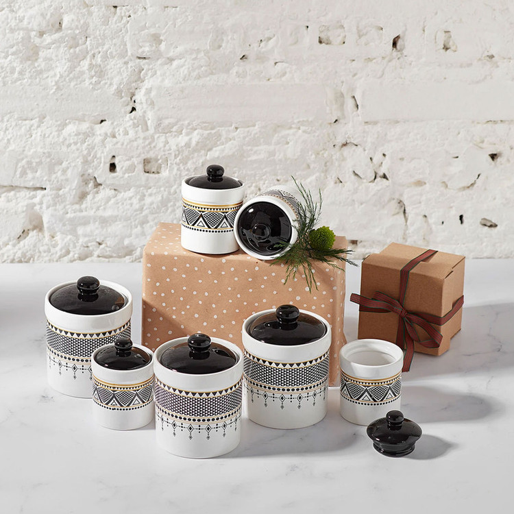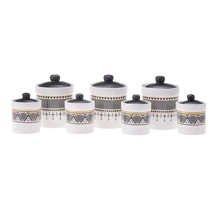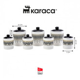 ست ادویه 7 تکه Karaca 2024 که با نقوش هندسی و هارمونی بی نظیر رنگ های سیاه، سفید و طلایی ظاهری شیک به آشپزخانه شما می بخشد، به لطف مواد سنگی خود استفاده بادوام و سالمی را ارائه می دهد. با محافظت از ادویه ها در برابر عوامل خارجی با درب خلاء خود به تازه نگه داشتن ادویه های شما کمک می کند. ست ادویه جدید کاراجا 2024 که به لطف ست گسترده ای که دارد به شما اجازه می دهد تا انواع ادویه ها را به راحتی نگهداری کنید، در ماشین ظرفشویی آسیبی نمی بیند. ست پاسماوری کاراجا ساخت ترکیه ، ست بسیار خاص و زیبا مناسب برای نگهداری انواع ادویه، شکر، قند، هل، چای خشک و … طراحی شده و شما میتوانید با استفاده از آن، تمامی مواد مورد نیاز جهت آماده نمودن انواع چای و دمنوش را در دسترس داشته باشید.درب چفتی دارای واشر سیلیکونی تعبیه شده برای هریک از محفظههای این ست نیز به خوبی بر روی آنها بسته شده و از ورود هرگونه آلودگی و گرد و خاک به درون مخزن جلوگیری میکند؛از این رو شما میتوانید بدون نگرانی از آلوده شدن محتوی، مخزنها را در فضای آشپزخانه و محیط های پذیرایی خود قرار دهید.تضاد رنگی درب و بدنه است که تکمیل کننده ی زیبایی خاص این محصول است. جنس این محصول سنگی می باشد، شکل و رنگ آن از خاک رس کائولن سفید گرفته شده است. ظاهر شیشه ای آن از سنگ کوارتز می آید. ساختار سخت و بادوام خود را از کانی های فلدسپات به دست می آورد.مقاومت برتر : به دلیل ساختار سختی که دارد به دلیل لعاب در دمای بالاتر از سرامیک، بالای 1200 درجه سانتی گراد، در برابر خراش مقاوم است. تحت تأثیر اسید قرار نمی گیرد.در برابر ترک مقاومت می کند زیرا ساختار تخلخل آن کم است. به این ترتیب آب را جذب نمی کند و باکتری را در خود جای نمی دهد. بدون سرب :سالم است زیرا حاوی فلزات سنگین مانند سرب نیست. نظافت و نگهداری : به راحتی می توان آن را تمیز کرد. به دلیل خاصیت ضد آب بودن، بهداشتی است. به دلیل ساختار بادوام آن می توان از آن در مایکروویو و فریزر استفاده کرد. در ماشین ظرفشویی آسیب نمی بیند.به لطف ساختار طبیعی خود، دمای غذا را برای مدت طولانی حفظ می کند.
