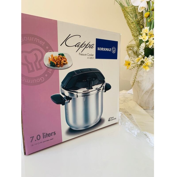 زودپز 7لیتری کرکماز مدل A148 محصول کمپانی کرکماز(KORKMAZ) ترکیه است ، و این محصول می تواند با صرفه جویی در وقت و هزینه ی شما مواد غذایی را در مدت زمان کوتاهی برای شما بپزد. از آن جایی که بدنه ی این محصول از جنس استیل ضد زنگ می باشد سالیان سال برای شما کارمی کند و در برابر حرارت و تغییر رنگ از مقاومت بسیار بالایی برخوردار است که میتوانید به راحتی بر روی هر اجاق گازی قرار دهید. از ویژگی های این محصول می توان دستگیره از جنس پلاستیک مقاوم ،مجهز به قفل ایمنی، سوپاپ اطمینان و … را نام برد ، همچنین کف این این زودپز به صورت خورشیدی و کپسولی است که حرارت را به طور یکنواخت در کل ظرف پخش می کند و درب آن کاملا چفت و محکم است که از خروج بخارحین پخت و پز جلوگیری می کند، همچنین قابلیت پخت برای حداقل4و حداکثر14 نفر را به همراه دارد.