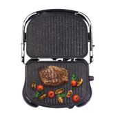 این دستگاه با توان مصرفی 1800 وات، دارای بدنه ای از جنس فلز می باشد که علاوه بر ظاهر خاصی که دارد از استحکام و عملکرد فوق العاده ای نیز برخوردار است. برای ساندویچ ساز کرکماز کد A324 صفحه هایی از جنس گرانیتی با پوشش PTFE و نچسب در نظر گرفته شده و مواد غذایی به آن نمی چسبد ضمن آن که شیارهای طراحی شده بر روی این صفحات به حفظ روغن موجود در مواد غذایی کمک می کند و لازم نیست شما از روغن بیشتری برای سرخ و گریل کردن استفاده کنید. به عنوان مثال می توان از روغن موجود در انواع گوشت برای طبخ و گریل کردن آن ها استفاده کرده و دیگر نیاز نباشد تا از روغن جداگانه ای برای این منظور استفاده کنید. حرارت در گریل 324 به تدریجی و اتوماتیک تنظیم خواهد شد و به نشانگر کنترل دما مجهز شده است. این دستگاه دارای ظرفیت 6 عدد نان تست بوده که آنها را در مدت 3 دقیقه برشته میکند. گریل کرکماز علاوه بر قابلیت برشته کردن، در صورتی که آن را در حالت گریل قرار دهید، میتوانید برای کباب کردن مرغ یا گوشت در 12 دقیقه یا ماهی در 6 دقیقه از آن نیز استفاد صفحات این دستگاه به اندازه 180 درجه باز شده و می توان گوشت، ماهی، سوسیس و همچنین انواع سبزیجات را روی این صفحات به راحتی گریل کرده و از طعم خوش غذاهای گریل شده و کبابی بهره مند شد. با برخورداری از ساندویچ ساز و گریل کرکماز KORKMAZ می توان انواع ساندویچ ها را به راحتی آماده کرد. برای این منظور کافیست تا مواد را روی نان مورد نظرتان گذاشته و داخل دستگاه قرار دهید، سپس درب دستگاه را ببندید تا پس از زمان تعیین شده ساندویچ های داغ و خوشمزه آماده گردند. کلید روشن و خاموش کردن ساندویچ ساز کد A324 کرکماز که به صورت ولومی چرخشی می باشد روی پایه قرار دارد و می توان از همین قسمت درجه دستگاه را نیز تنظیم کرد. همچنین این دستگاه دارای دو چراغ نشانگر می باشد که می تواند روشن بودن دستگاه و یا زمان اتمام کار را به کاربر نشان دهد. دسته ای که برای ساندویچ ساز و گریل کرکماز KORKMAZ در نظر گرفته شده کمک می کند تا کاربر بتواند درب را باز کرده و راحت تر از دستگاه استفاده نماید. این صفحه های نچسب از دستگاه جدا شده و شست و شوی آن ها به راحتی صورت می گیرد.