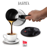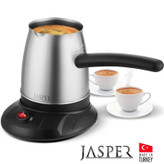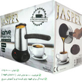 قهوه جوش برقی جاسپر مدل JPR-5002 محصولی جدید و کاربردی از شرکت JASPER جاسپر، ساخت ترکیه می باشد که به شکل ساده و محبوب با استانداردهای بهداشتی و سلامتی اروپا طراحی و تولید شده است. بدنه این قهوه ساز از استیل ضد زنگ 18/10 تهیه شده و جنس داخلی کف قهوه ساز نیز استیل ضدزنگ می باشد. استفاده از این محصول بسیار ساده و تنها کافی است تا دکمه آن را فشار دهید در عرض چند ثانیه قهوه با کف عالی و نوشیدنی مورد علاقه شما آماده می شود. دسته دستگاه حالت ارگونیک داشته و دکمه ON/OFF دستگاه نیز دارای لامپ ال ای دی مخصوص روی پایه تعبیه شده است. ظرفیت 500 میلی لیتر دستگاه امکان تهیه 6 فنجان قهوه را در هر بار استفاده به کاربر میدهد. داخل محظفه قهوه جوش با علامت MAX حداکثر میزان ظرفیت را مشخص نموده است، امکان چرخش کامل 360 درجه ای قهوه جوش روی پایه خود . و کابل برق به پایه دستگاه متصل است یعنی مخزن دستگاه کاملا بی سیم بوده و به راحتی قابل جابجایی و استفاده می باشد. محصولات جاسپر همواره کیفیت و لذت را برای شما به ارمغان آورده اند. نوش جانتان