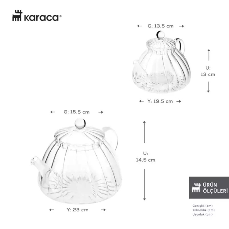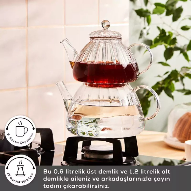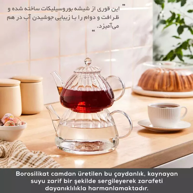 مجموعه کتری و قوری شیشه ای بوروسیلیکات کاراجا مدل لری KARACA-LORI ساخت ترکیه ، این ست شیشه ای مقاوم با دم کردن چای، قهوه و دمنوش به صورت سالم و خوشمزه با قوری 0.6 لیتری و کتری 1.6 لیتری خود به تجربه چای و نوشیدنی شما لذت می بخشد. قوری شیشه ای چای شما را سالم تر و خوشمزه تر می کند. با دیدن مقدار دم و آب موجود در چای می توانید چای خود را با قوام ایده آل دم کنید. ساختار شیک آن با انواع اجاق گازها و اجاق های القایی نیز سازگار است. بسیار جذاب است و می توان آن را در ماشین ظرفشویی شست. این کتری و قوری با دسته های شیشه ای از جنس بدنه، ترکیبی از طراحی و ظرافت بالای خود را نشان می دهد.