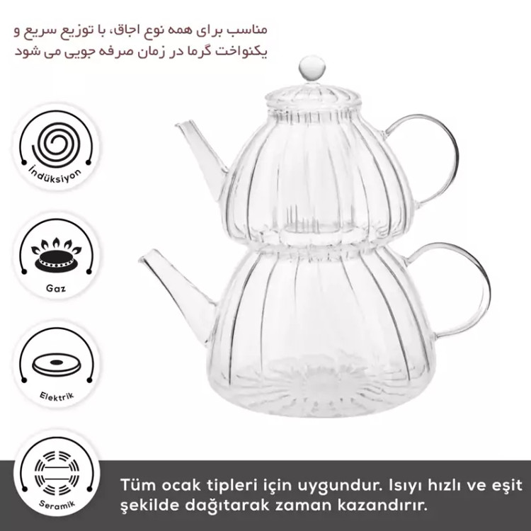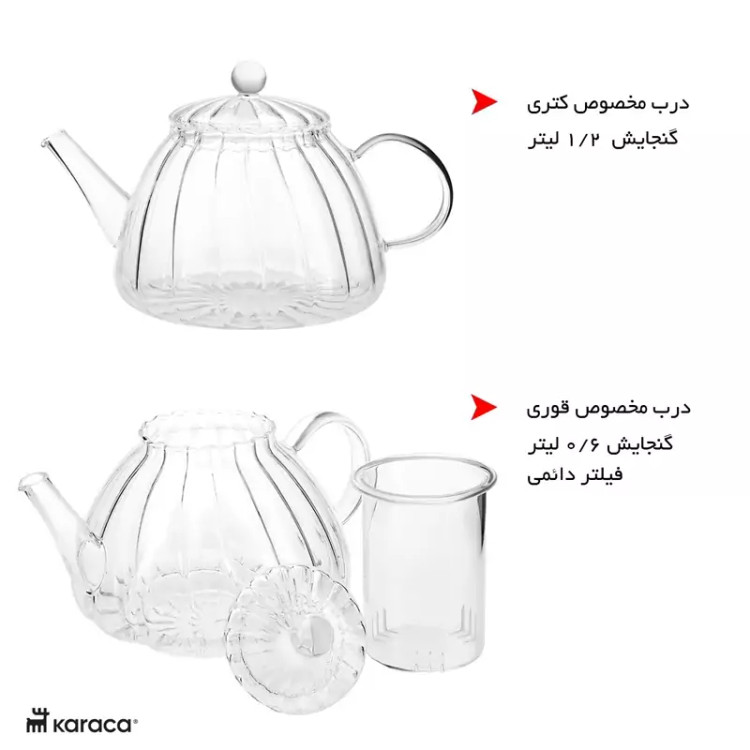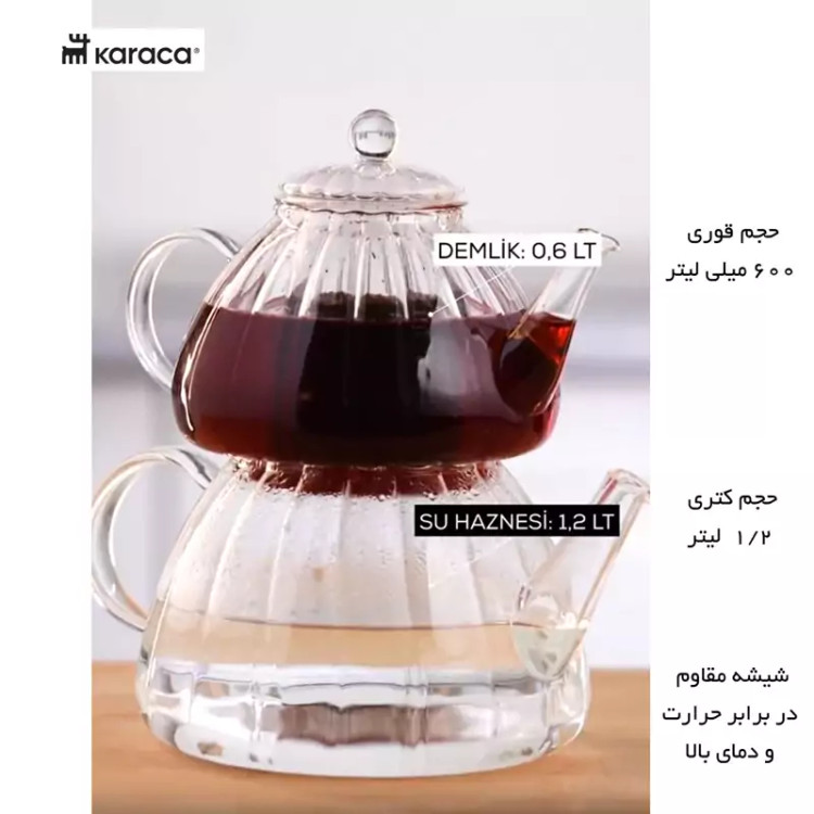 - کتری درب مخصوص خود را دارد - گنجایش کتری : 1.2 لیتر - قوری درب مخصوص خود را دارد - گنجایش قوری : 0.6 لیتر - قابلیت شستشو در ماشین ظرفشویی - قابلیت استفاده بر روی انواع اجاق گاز ها و القایی - قوری فیلتر و تفاله گیر دائمی دارد - از این محصول برای تهیه چای، قهوه و دمنوش می توان استفاده نمود - ساخت کاراجا-ترکیه