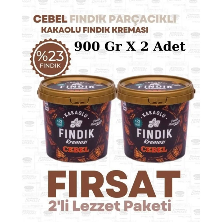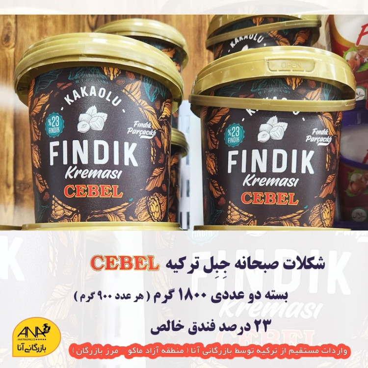 بسته 2 عددی شکلات صبحانه سطلی جبل(CEBEL) ترکیه کرم کاکائو فندقی 23 درصد با تکه های فندق 1800 گرم