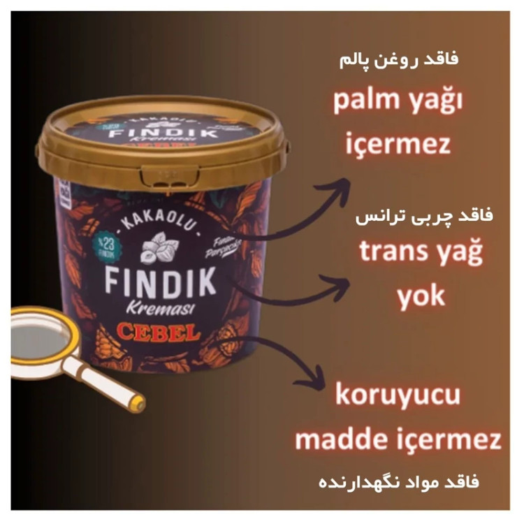 کشورتولیدکننده :ترکیه بدون روغن پالم و نگهدارنده و رنگهای صنعتی بسیار لذیذ و کیفیت عالی لذتی ماندگار محتوی 23 درصد فندق به علاوه تکه های فندق