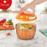 خشک کن، میکسر (مخلوط کن) و خردکن ژُناس ساخت فرانسه با طناب بزرگ؛ این محصول سه کاره ما راحتی زیادی در آشپزخانه برای شما فراهم می کند. به لطف تیغه های تیز و اتصال مخلوط کن، پیاز، سیر، هویج ، سبزیجات و میوه ها را عملا خرد کرده و مخلوط می کند. با دستگاه خشک کن به سرعت می توانید سالاد درست کنید. کاسه شفاف و سالم آن از مواد پلاستیکی محکم ( بدون BPA ، فاقد مواد مضر سلامتی انسان )ساخته شده است و به راحتی می توانید مواد داغ را با هم مخلوط کنید.دارای تیغه های فولادی ( استیل ) ضد زنگ با ماندگاری طولانی. این محصول کارآمد دارای استانداردهای ایمنی و سلامت انسان از اروپا می باشد.کار با این دستگاه بسیار راحت و جذاب بوده و کارایی عالی دارد. از این رو نیاز واقعی هر آشپزخانه و آشپز خوش سلیقه ای می باشد.برش حرفه ای و راحت با مکانیزم دستی به لطف تیغه سه گانه ضد زنگ. سطح دستی ارگونومیک و راحت. کاسه بادوام... این محصول از پلاستیک درجه یک مقاوم با استانداردهای بهداشتی و صنعتی اروپایی تولید شده و فاقد ماده شیمیایی بی پی ای که مضر سلامتی انسان است می باشد. این محصول جدید طراحی منحصر بفرد خود را دارد و شاسی موجود در روی درب محصول بسیار نرم و روان بوده که تنها با فشار دادن چند بار آن، کلیه مواد بصورت یکدست و یکنواخت خرد می شوند. بسیار ارگونومیک و خوش دست می باشد. این خرد کن دارای سه تیغه از استیل درجه یک بسیار تیز است و حتی با پرکردن کاسه از سبزیجات، مواد غذایی و... کند نمیشود و میتواند سالهای سال با کیفیت اولیه برای شما کار کند. نکتهی مهم دیگر این است که چون تیغه ها قوص دار می باشند و این باعث میشود مواد درون محفظه خردکن با چند بار کشیدن شاسی، بصورت یکدست و یکنواخت خرد شوند. از این محصول برای خرد کردن انواع مواد غذایی، میوه، سبزی، خشکبار، آجیل و ... می توان استفاده کرد. جنس محفظه خردکن از پلاستیک شفاف و پایه محصول از گسکت واشر سیلیکونی تولید شده که باعث چسبندگی آن به سطح میز شده و هرگز سُر نمیخورد. این محصول مورد نیاز هر کدبانوی خوش سلیقه ای می باشد. کلیه قسمت ها قابل شستشو در ماشین ظرفشویی هستند.