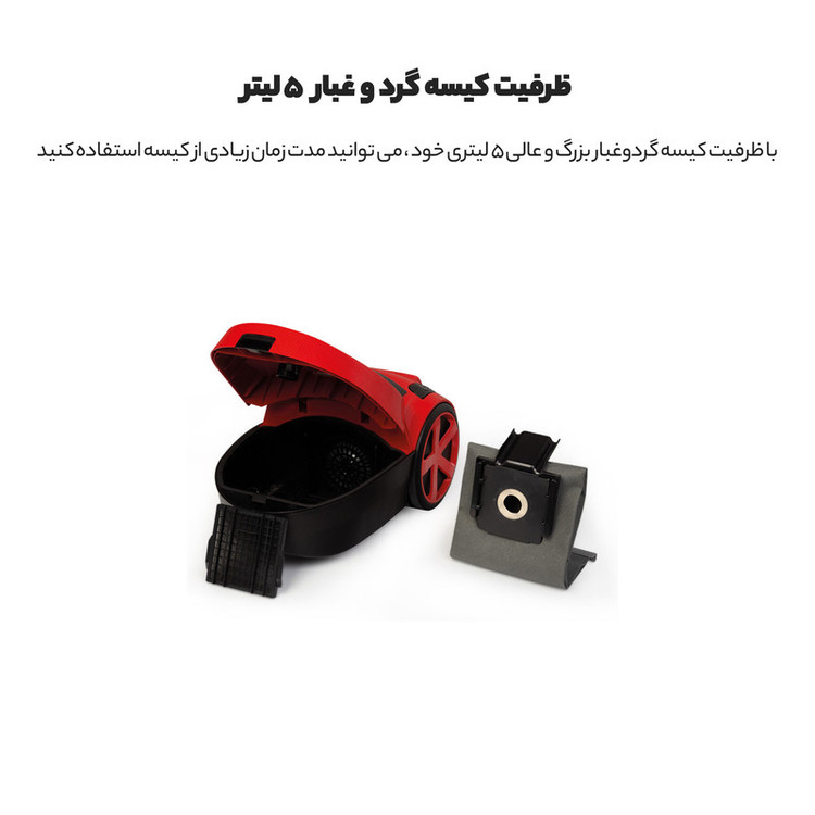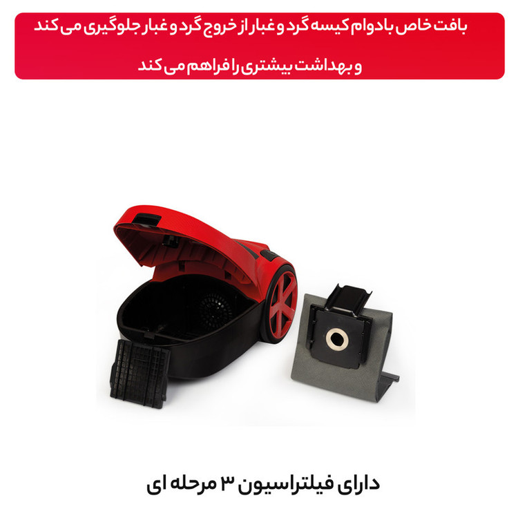 جاروبرقی فانتوم ترکیه مدل FANTOM DC 3000 ، با ظرفیت کیسه گردوغبار بزرگ و عالی 5 لیتری خود ، می توانید مدت زمان زیادی از کیسه استفاده کنید. بافت خاص بادوام کیسه گرد و غبار از خروج گرد و غبار جلوگیری می کند و بهداشت بیشتری را فراهم می کند. به لطف پنل نشانگر پر شدن کیسه گرد و غبار، می توانید پر بودن کیسه را بررسی کنید. قدرت مکش بالا ، سیستم فیلتراسیون 3 مرحله ای، طراحی ارگونومیک و سیم جمع کن خودکار از دیگر مزایای این محصول پرقدرت فانتوم ساخت ترکیه است که می توانید با خیال راحت برای سالیان سال از آن استفاده نمایید. این جاروبرقی در 6 رنگ جذاب و زیبا تولید و روانه بازار شده است که برای هر سلیقه ای قابل انتخاب و پسند می باشد. این محصول دارای استاندارهای صنعتی و بهداشتی از اروپا را دارد که برای کشورهای اروپایی، آفریقایی و آمریکایی صادرات می شود.