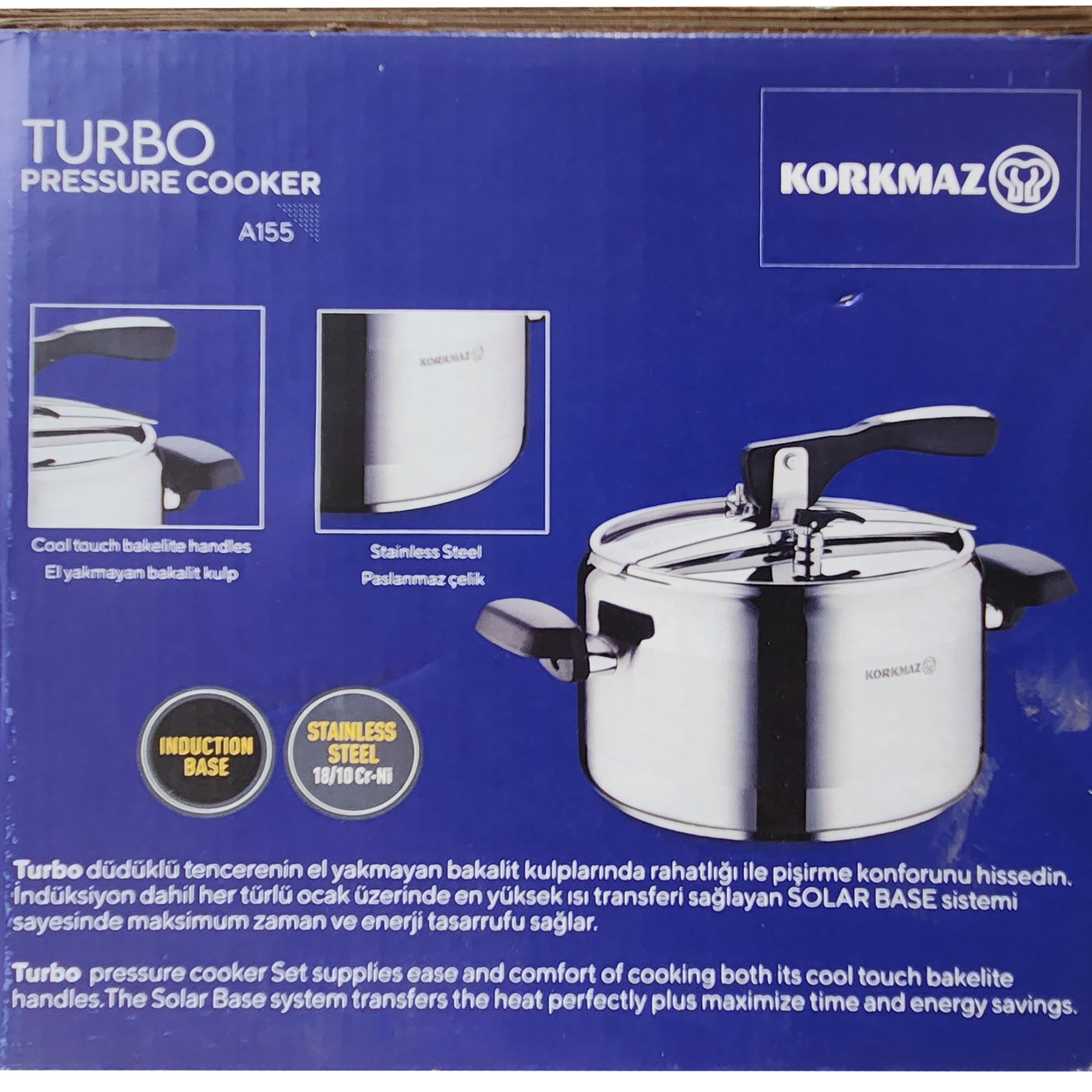 زودپز و آرام پز کرکماز محصول پرفروش برند کرماز ترکیه میباشد که از استیل ضد زنگ با استاندارد جهانی 18/10 تولید شده که در این محصول دو دستگیره از جنس باکالیت نسوز و خوش دست استفاده شده که حمل زودپز را بسیار آسان میکند این محصول بر روی انواع اجاقها گازی و از جمله برقی و غیره قابل استفاده میباشد این محصول با استفاده از سیستم SOLAR BASE تولید گردیده که باعث صرفه جویی در مصرف انرژی و زمان میشود که گرما را بصورت مساوی به داخل زودپز و مواد درحال پخت انتقال میدهد.این محصول داری کف چند لایه میباشد.