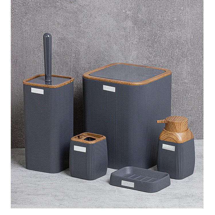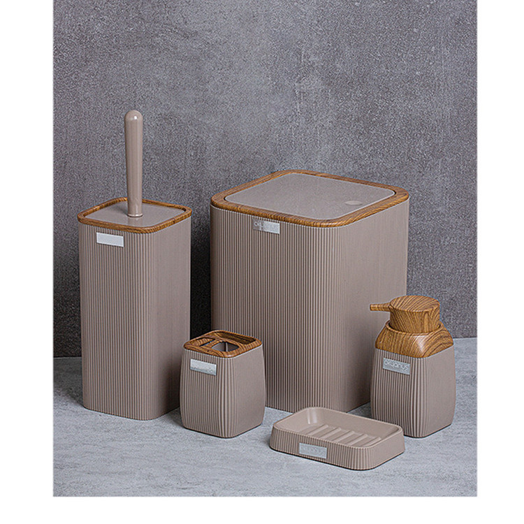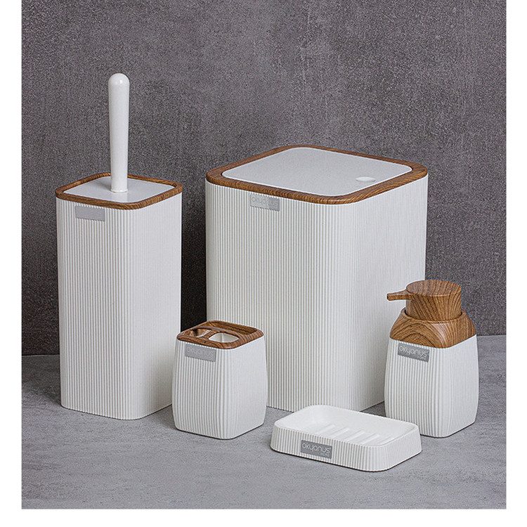 جدیدترین ست سرویس بهداشتی 5 پارچه ساخت فری هوم ترکیه پیشرو در صنعت بهداشت و لوازم خانگی، این ست 5 پارچه تمام نیازهای موجود در حمام و سرویس های بهداشتی را برطرف می نماید، محصولی بسیار کاربردی به همراه کیفیت و زیبایی. این مجموعه زیبا از آکریلیک تولید شده است که ماندگاری بسیار بالایی دارد. دارای استانداردهای ایمنی و سلامت بهداشت انسان از اروپا را دارد و محصولی صادراتی به اروپا می باشد. شامل سطل درب دار، فرچه و ظرف مخصوص آن، جا مسواکی، جامایع پمپی و جاصابونی می باشد.تمامی اقلام قابلیت شستوشو دارند و میتوانید با خیالی آسوده، آنها را بشویید. با این ست بهداشتی، زیبایی محیط و سرویس ها چندین برابر میشود.