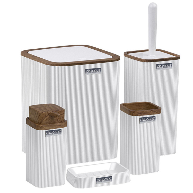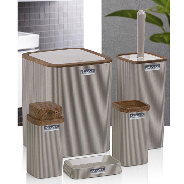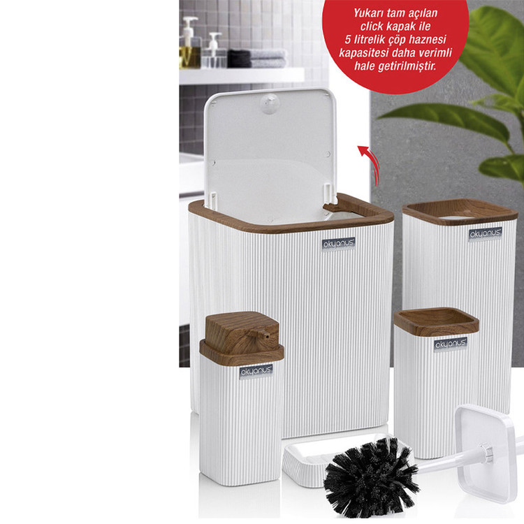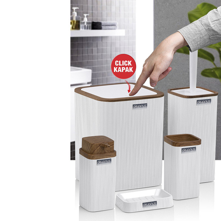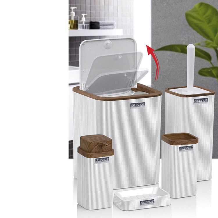 جدیدترین ست سرویس بهداشتی 5 پارچه ساخت فری هوم ترکیه پیشرو در صنعت بهداشت و لوازم خانگی، این ست 5 پارچه تمام نیازهای موجود در حمام و سرویس های بهداشتی را برطرف می نماید، محصولی بسیار کاربردی به همراه کیفیت و زیبایی. این مجموعه زیبا از آکریلیک تولید شده است که ماندگاری بسیار بالایی دارد. دارای استانداردهای ایمنی و سلامت بهداشت انسان از اروپا را دارد و محصولی صادراتی به اروپا می باشد. شامل سطل درب دار، فرچه و ظرف مخصوص آن، جا مسواکی، جامایع پمپی و جاصابونی می باشد.تمامی اقلام قابلیت شستوشو دارند و میتوانید با خیالی آسوده، آنها را بشویید. با این ست بهداشتی، زیبایی محیط و سرویس ها چندین برابر میشود.