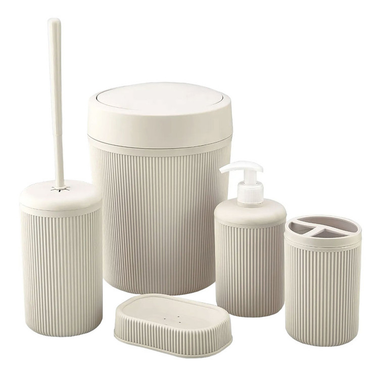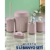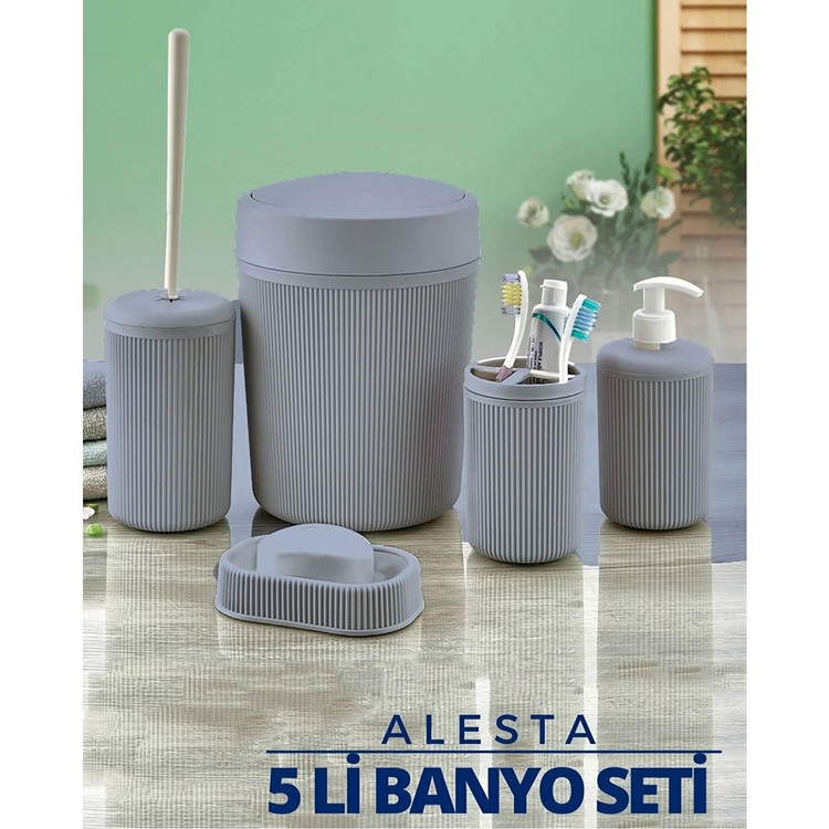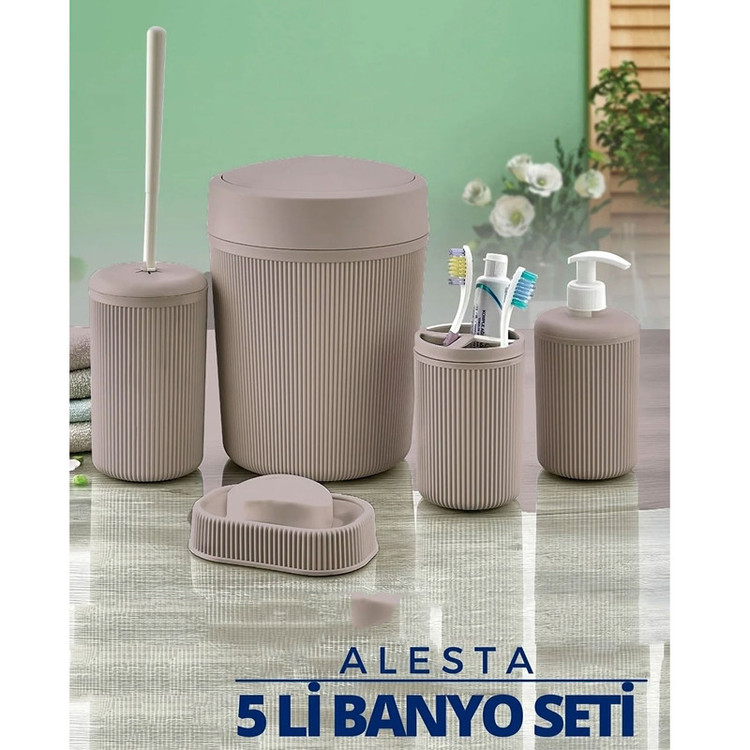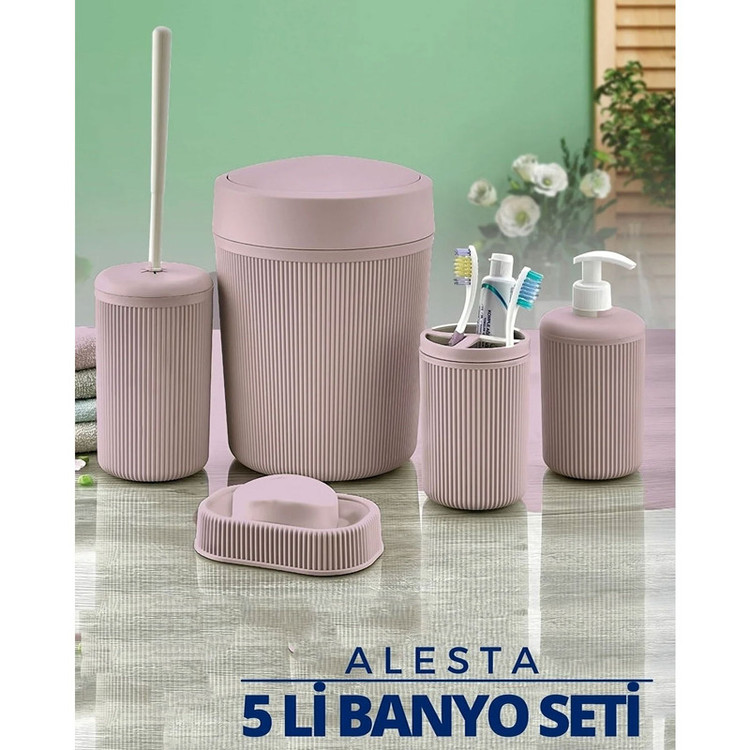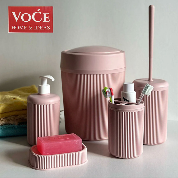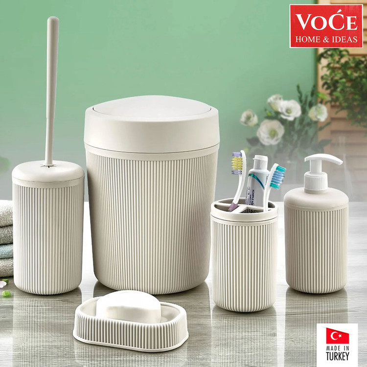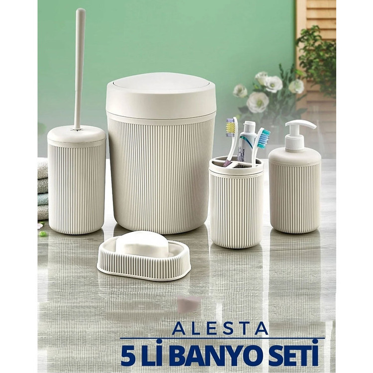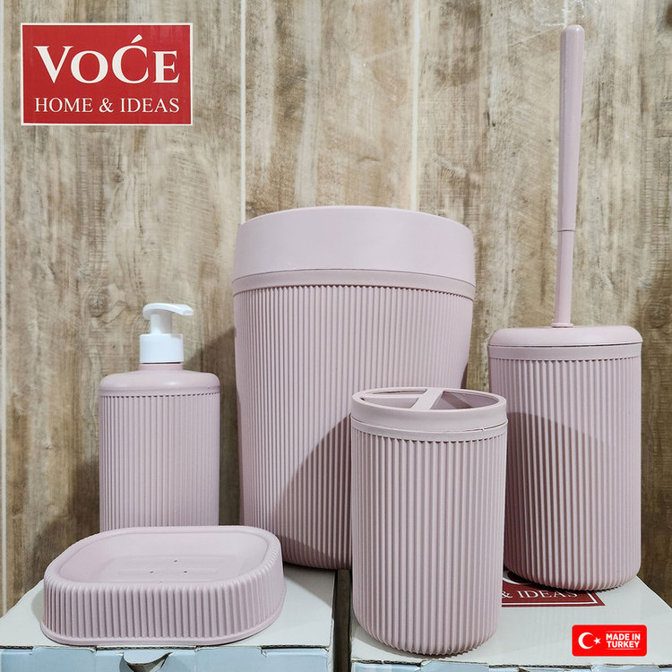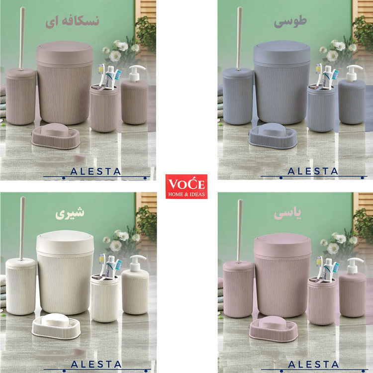 جدیدترین ست سرویس بهداشتی 5 پارچه ساخت VOCE ترکیه مدل آلستا، این ست 5 پارچه تمام نیازهای موجود در حمام و سرویس های بهداشتی را برطرف می نماید، محصولی بسیار کاربردی به همراه کیفیت و زیبایی. این مجموعه زیبا از پلاستیک آکریلیک تولید شده است که ماندگاری بسیار بالایی دارد. دارای استانداردهای ایمنی و سلامت بهداشت انسان از اروپا را دارد و محصولی صادراتی به اروپا می باشد. شامل سطل درب دار چرخان ، فرچه و ظرف مخصوص آن، جا مسواکی، جامایع پمپی و جاصابونی می باشد.تمامی اقلام قابلیت شستوشو دارند و میتوانید با خیالی آسوده، آنها را بشویید. با این ست بهداشتی، زیبایی محیط و سرویس ها چندین برابر میشود.