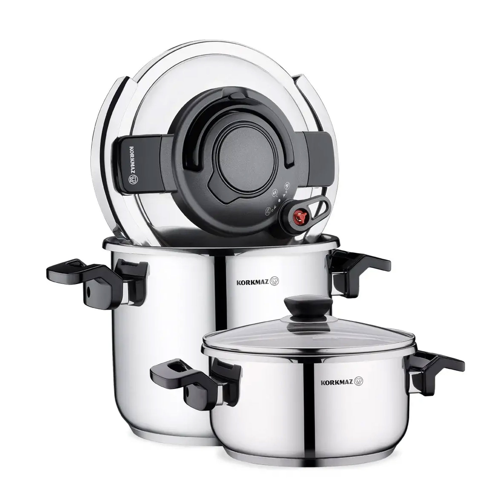 زودپز دوقلو KORKMAZ A178 مدل ALESSA یک ست کاربردی و زیبا از برند کرکماز ترکیه است که با طراحی هوشمندانه، کیفیت ساخت بالا و ایمنی مناسب، انتخابی عالی برای آشپزهای خانگی و حرفهای محسوب میشود.