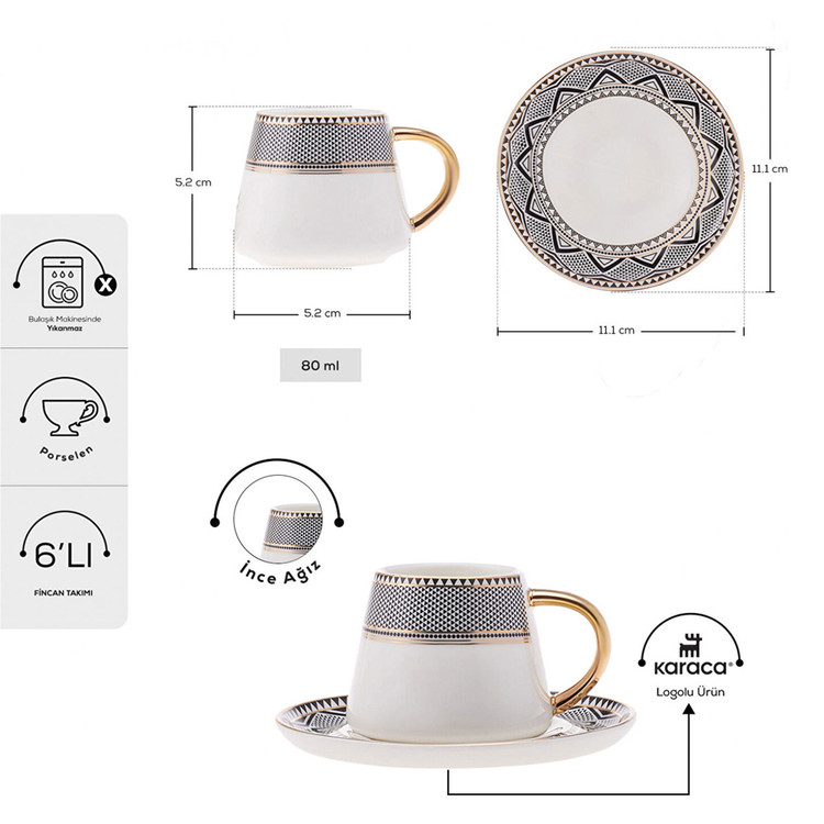 ۶ فنجان قهوه ۸۰ میلیلیتری ۶ نعلبکی جنس: چینی