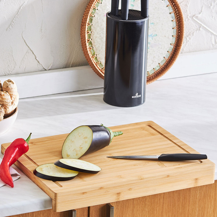 - تخته گوشت، برش و خردکن لبه دار مخصوص رومیزی کاراجا - ساخت ترکیه - سطح برش دو طرفه از جنس چوب بامبو - هر دو سطح تخته قابل استفاده می باشد - استفاده به عنوان سرو انواع غذا و خوراکی - قابل استفاده برای انواع نان، سبزی، میوه، ماهی و گوشت - شستشو توسط دست توصیه شده است - بدون پولیش و رنگ می باشد - دارای خاصیت ضد باکتری - مقاوم در برابر آب