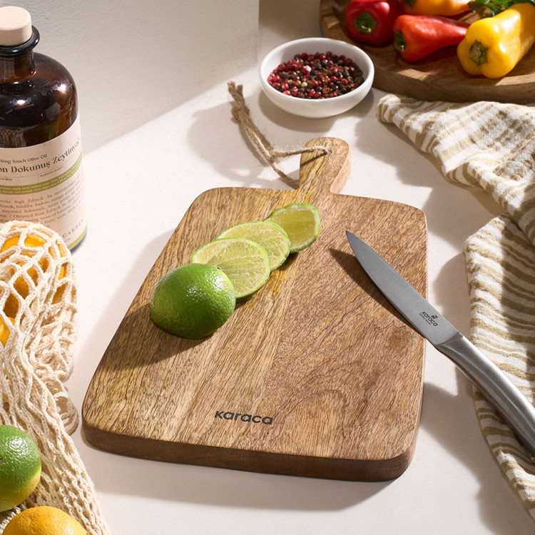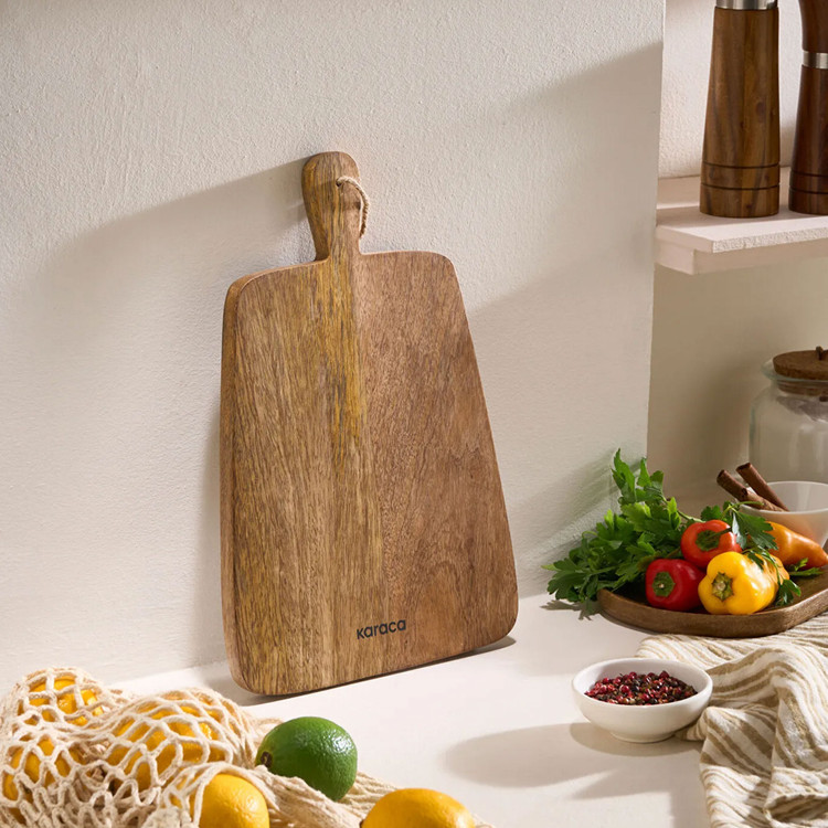 سری کاراجا انبه با الهام از طبیعت، با دوام و سادگی چوب انبه، سبکی منحصر به فرد در خانه شما ایجاد میکند. هر قطعه دستساز، هم از نظر بصری جذاب است و هم در استفاده روزمره فوراً قابل تشخیص است. ساختار ایمن آن برای غذا، استفاده سالم را تضمین میکند. این تخته به هر میزی جلوه و شخصیت طبیعی میبخشد.