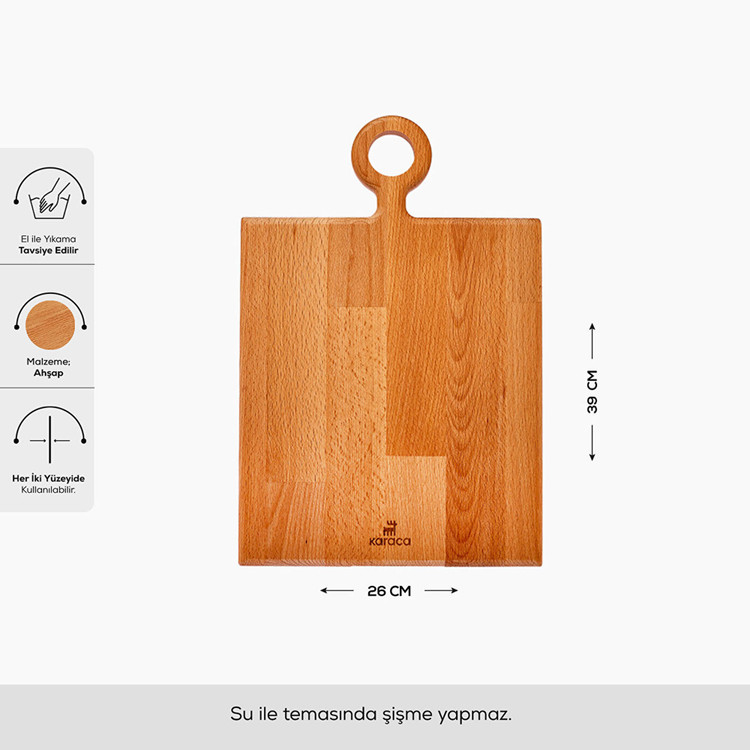 - تخته گوشت، برش و خردکن کاراجا - ساخت ترکیه - سطح برش دو طرفه - هر دو سطح تخته قابل استفاده می باشد - استفاده به عنوان سرو انواع غذا و خوراکی - قابل استفاده برای انواع نان، سبزی، میوه، ماهی و گوشت - دسته جهت آویز کردن آسان - شستشو توسط دست توصیه شده است - بدون پولیش و رنگ می باشد - دارای خاصیت ضد باکتری - مقاوم در برابر آب