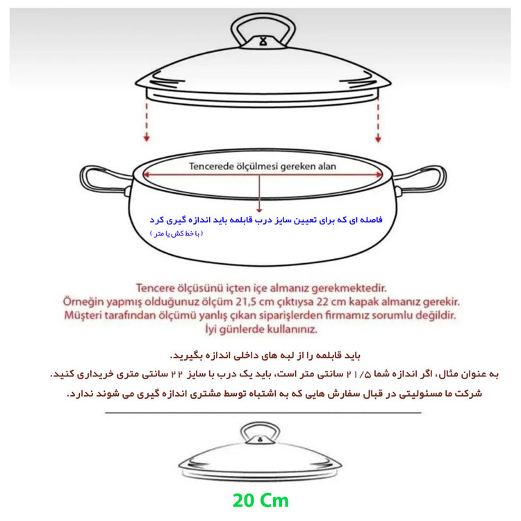 - سایز ۲۰ سانتی متر - ساخت ترکیه - قابل استفاده برای انواع قابلمه و تابه - جنس محصول از پیرکس اصل - مقاوم در برابر شوک های حرارتی بالا - وجود قسمت های مخصوص در قسمت لبه، جهت تخلیه بخار اضافی داخل قابلمه یا تابه - برای اطمینان از اندازه دقیق درب قابلمه یا تابه، از راهنمای تصویری قرار داده شده در تصاویر استفاده کنید - این محصول فقط یک عدد درب می باشد ( طبق تصویر اصلی محصول ) و هیچگونه دستگیره، دسته و .... همراه محصول ارسال نمی شود... - فاقد مواد سرطان زا
