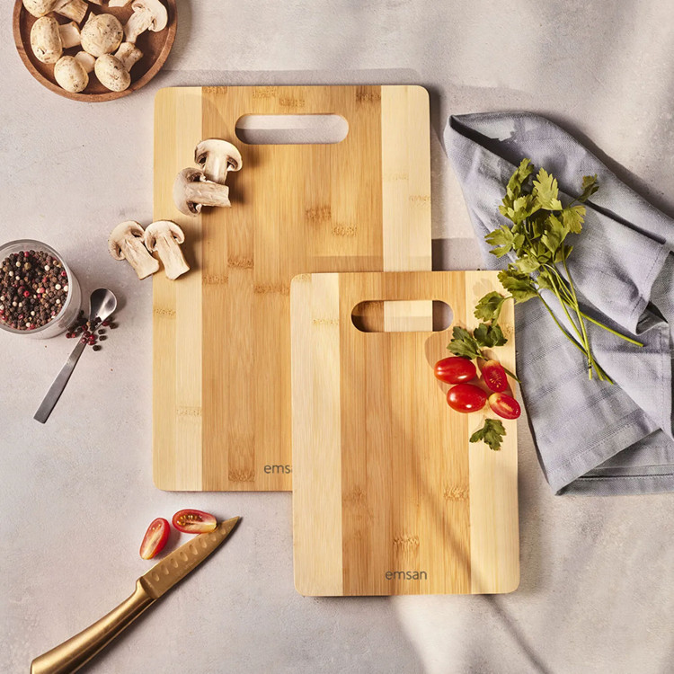 - تخته گوشت، برش،سرو و خردکن امسان - ساخت ترکیه - مجموعه 2 عددی- سطح برش دو طرفه - هر دو سطح تخته قابل استفاده می باشد - استفاده به عنوان سرو انواع غذا و خوراکی - قابل استفاده برای انواع نان، سبزی، میوه، ماهی و گوشت - دسته جهت آویز کردن آسان - شستشو توسط دست توصیه شده است - بدون پولیش و رنگ می باشد - دارای خاصیت ضد باکتری - مقاوم در برابر آب