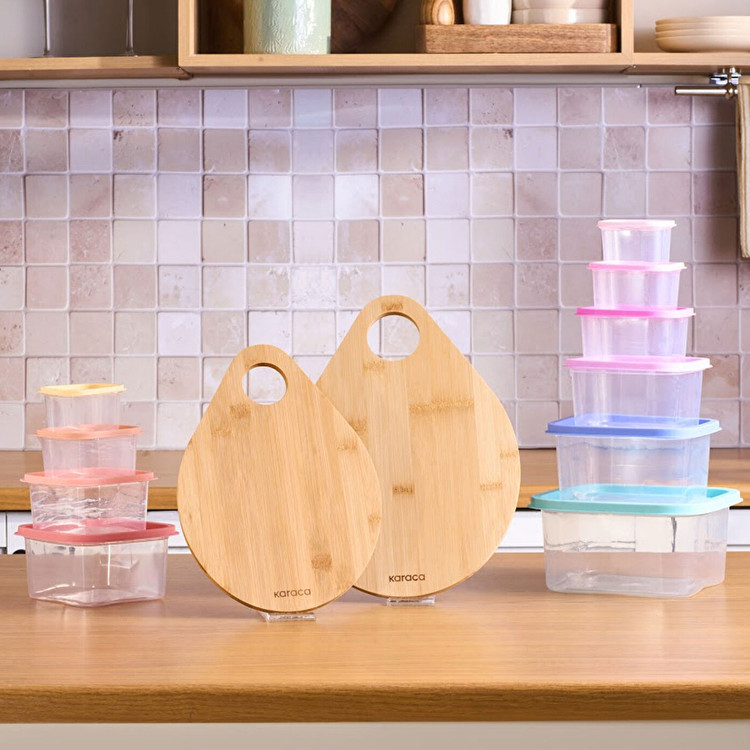 تخته : چوب بامبو - ظروف نگهدارنده : پلاستیک
