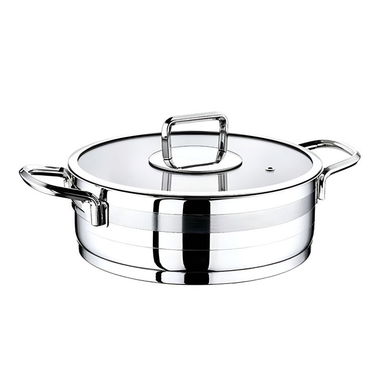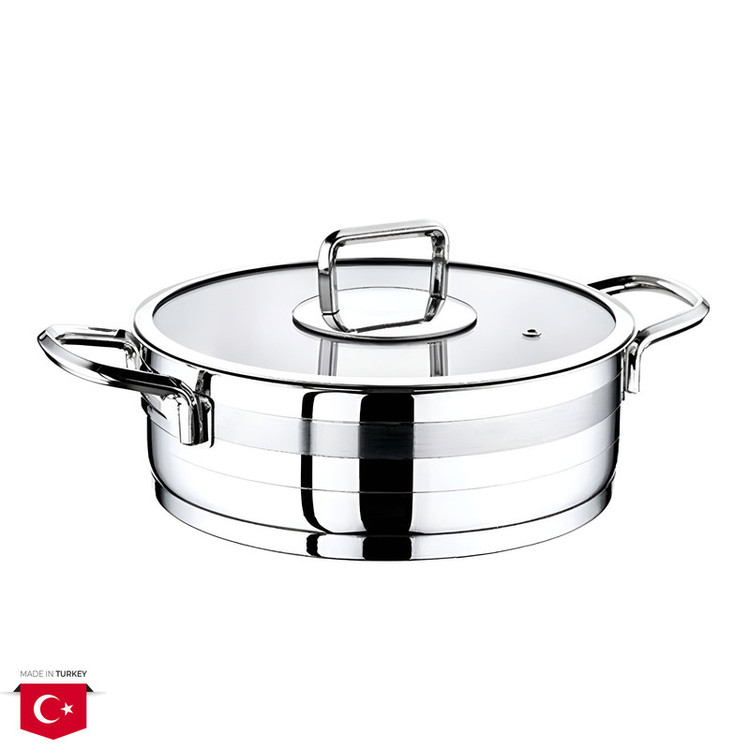 بدنهی براق و درخشان استیل ۱۸/۱۰، با دو دستهی محکم و خوشفرم،