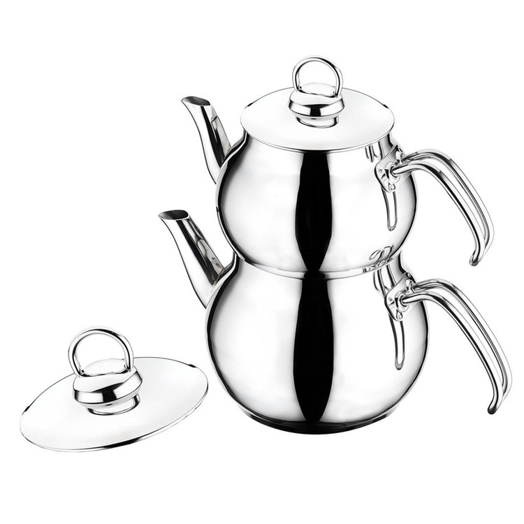 مجموعه ست کتری، قوری مدل یاغمور محصولی جدید از کارخانه بزرگ اویم سارای Evim Saray ترکیه می باشد، این محصول از نظر طراحی و زیبایی متفاوت بوده ، قوری و کتری از ظرفیت خوبی برخوردار بوده و هر دو دارای درب مخصوص به خود هستند ، جنس مجموعه از استیل ضدزنگ نیکل - با روکش کروم 18/10 مرغوب ترین نوع استیل میباشد که از نظر دوام و کیفیت استیل بی نظیر بوده و مادام العمر کیفیت خود را حفظ می نماید. دسته های این محصول شیک و بینظیر از جنس مقاوم در برابر حرارت که کاملا عایق نچسب و نسوز می باشند تولید شده است. درب و بدنه کتری دارای منافذ مخصوص به منظور تخلیه بخار اضافی طراحی شده است. این کتری و قوری برای استفاده روی کلیه اجاق های موجود در بازار مناسب می باشد.