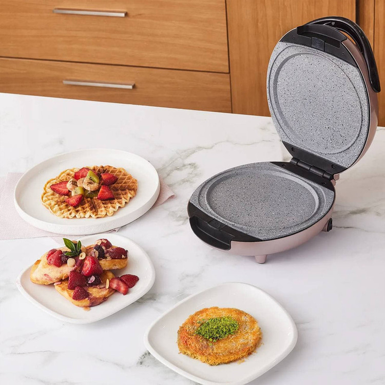 صفحه پخت گرانیت نچسب, صفحات دارای عمق استاندارد و کافی برای پخت می باشند, به راحتی قابل جداسازی و شستشو هستند, جنس صفحات جدا شونده تفلون صفحات وافل ساز قابل جابه جایی و شستشو در ماشین ظرفشویی مدت زمان 4 دقیقه پخت وافل مناسب برای وافل و پنکیک