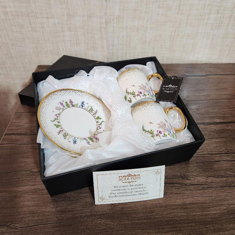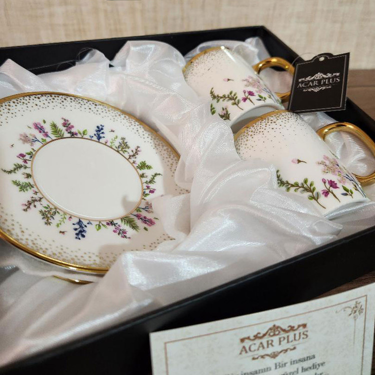 - ست 4 پارچه قهوه خوری آجار - ساخت ترکیه - جنس : چینی مقاوم - شامل 2 عدد فنجان و 2 عدد نعلبکی - بسته بندی شیک و جذاب - محصولی صادراتی به اروپا