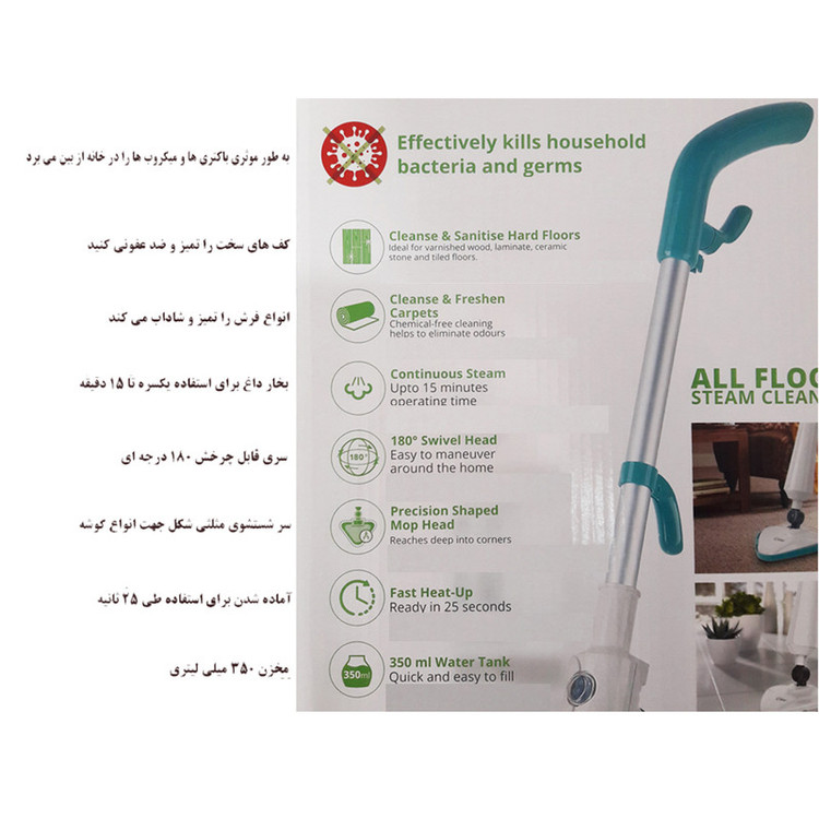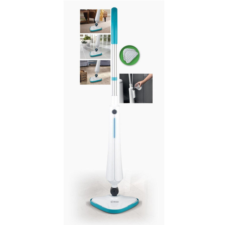 زمین شوی کیوی از لوازم کاربردی و پراستفاده برای نظافت سطوح هست که با عملکرد بخار خود به خوبی سطوح گوناگون را تمیز و ضدعفونی میکنند و در مقایسه با روشهای دیگر عملکردی بهداشتیتر و سریعتر دارند. دستگاههای زمین شوی در انواع مختلف و با طراحیهای متفاوت تولید میشوند و هر کدام برای کاربرد خاصی مناسب هستند. زمین شوی « کیوی » مدل « KSC-4215 » از محصولات خوشساخت و کاربردی ساخت ترکیه، تمیز کردن و ضد عفونی بدون مواد شیمیایی با بخار داغ قدرتمند است. این دستگاه وسیلهای کاربردی برای پاککردن سطوح مختلف نظیر سنگ، پارکت، فرش، موکت، اپوکسی، لمینت، چوب، سرامیک، شیشه و سایر سطوح بسیار مناسب است. دستهی ارگونومیک دارد و کفی بخارشوی با چرخش 180 درجهای امکان تمیز کردن نقاط مختلف با دسترسی دشوار ( زیر مبل و گوشه ها) را به کاربر میدهد. دارای ال ای دی مخصوص نشانگر وضعیت دمای آب و نشانگر مخصوص مقدار آب مخزن می باشد. برای کار با دستگاه پس از اتصال آن به برق کافی است 25 ثانیه صبر کنید تا زمین شوی در حالت آماده به کار قرار بگیرد. بخار دستگاه از نازل کفی خارج میشود و سطح وسیعی را پوشش میدهد.